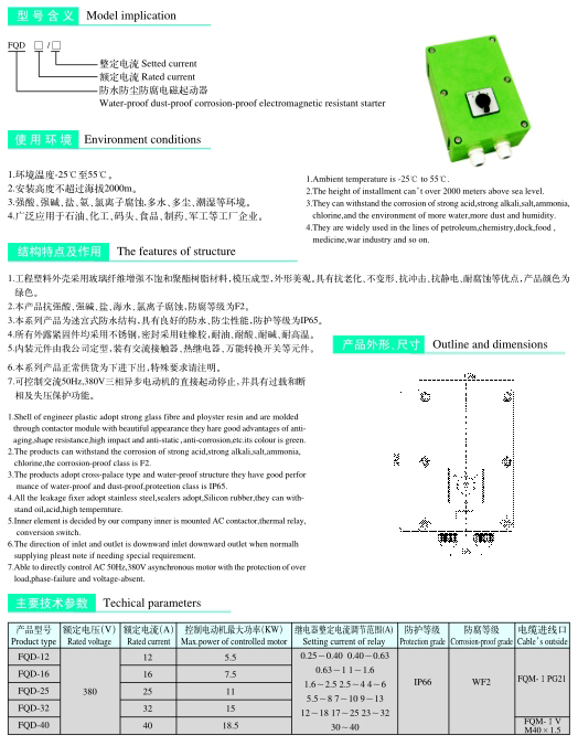 Category:FQD Type water-proof dust-proof corrosion-proof electrimagnetic reslstant starter