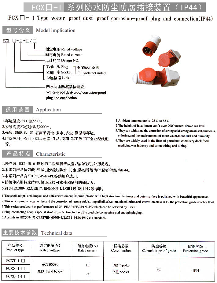 FCX口-I系列防水防尘防腐插接装置