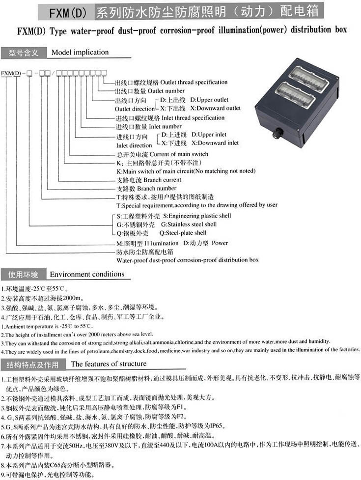 - FXM(D)系列防水防尘防腐照明(动力)配电箱