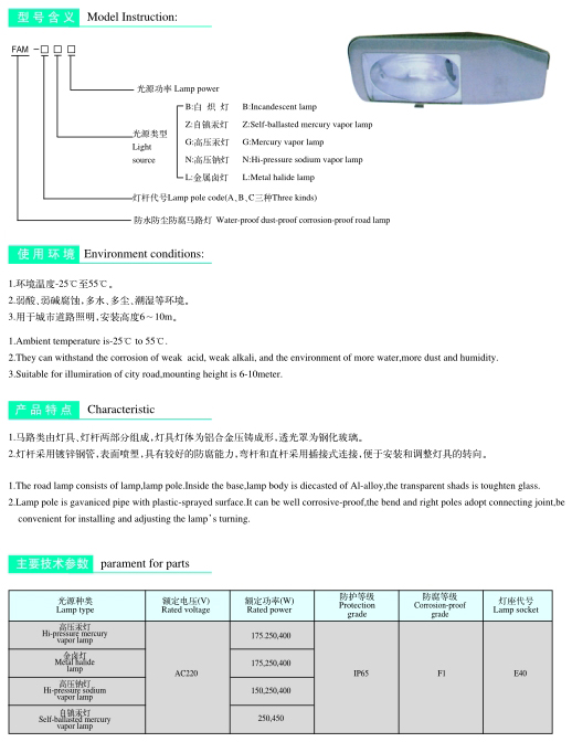 - FAM Type water-proof dust-proof corrosion-proof road lamps